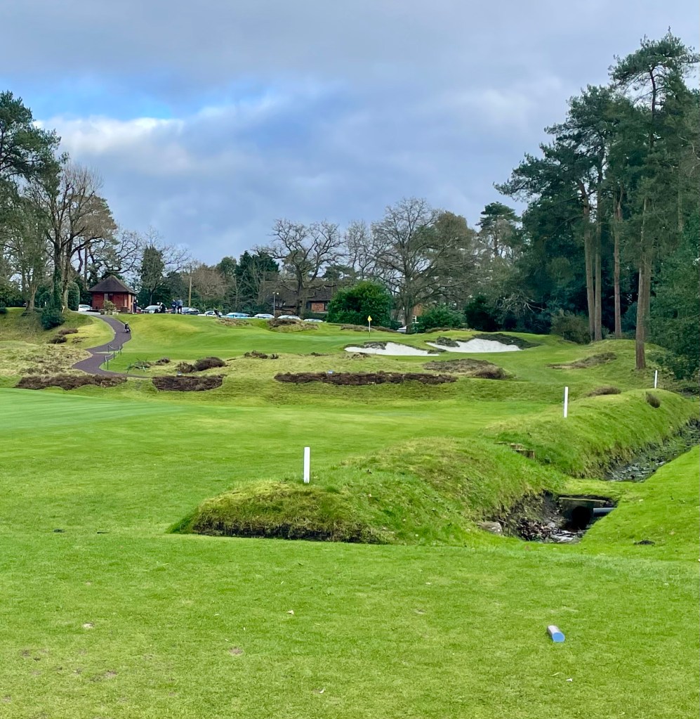 The back nine is strong across the board, but the finishing trio also makes a nice diverse finish. 16 is a par 4 that feels akin to Foxhills, navigating a fairway that splits tall pines, 17 is a yet another nice par 3, and you finish with an excellent par 4 where the approach plays up to a very challenging green perched on the hill below the clubhouse, but miss right and you find yourself in a huge bowl some 20ft beneath the hole.