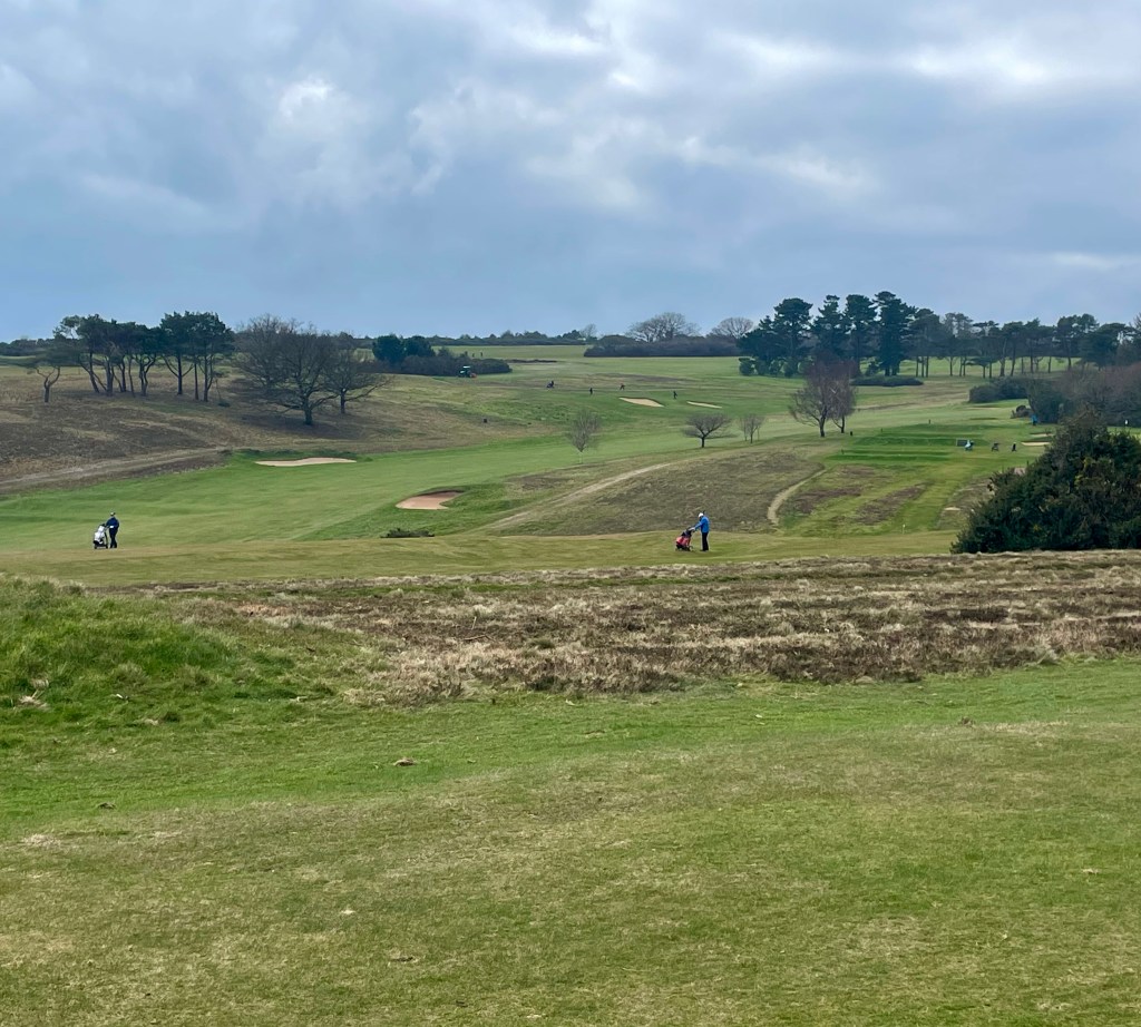 The first two holes are a classic heathland back and forth from the clubhouse, par 4s with undulating fairways lined by mature heather, followed by the 3rd which is a challenging longer par 4 that doglegs right but with a fairway that tapers on longer driver length up to a narrow green.