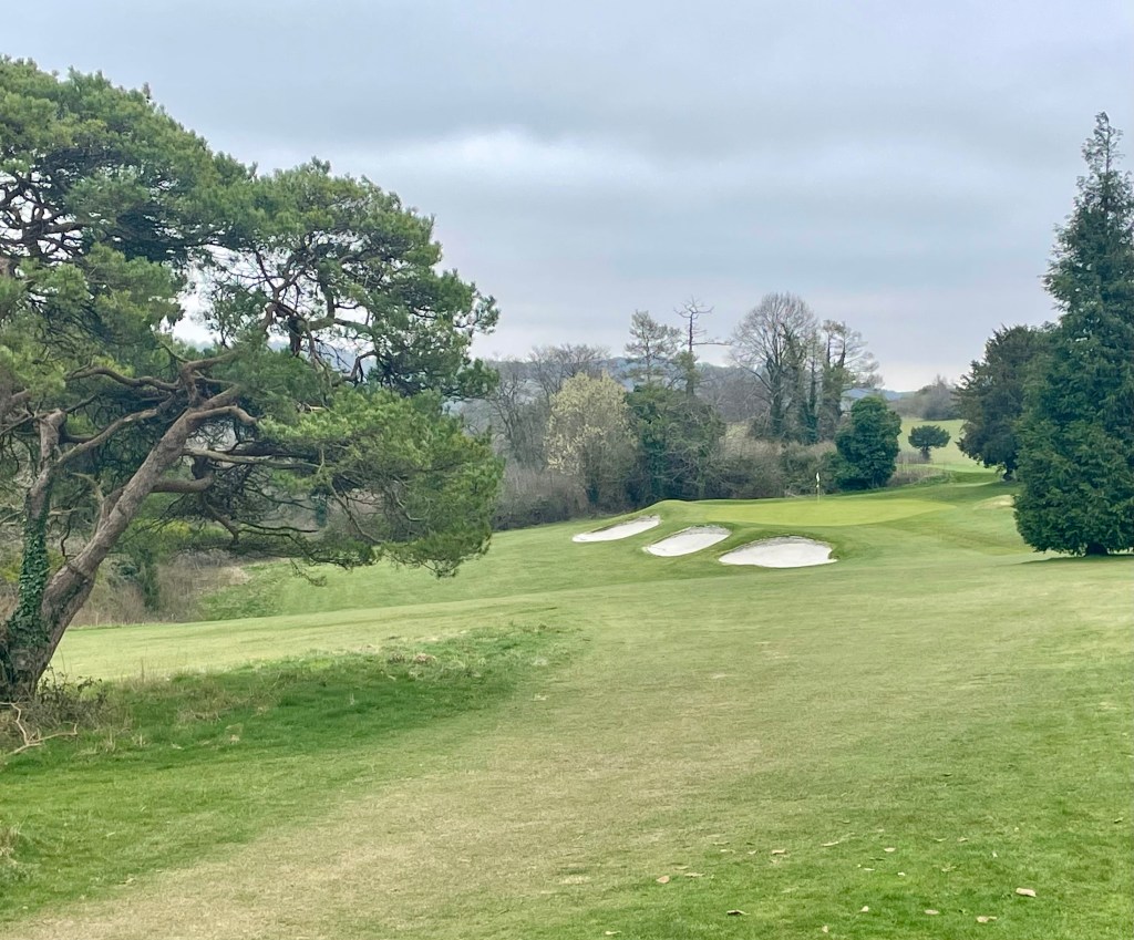 - 4th – a challenging longer par 4 where the tee shot is played to a fairway sliding left to right, which can be used to run past the copse of trees on the left side, with an elevated green that also runs the same way with severe run offs to the right and rear.