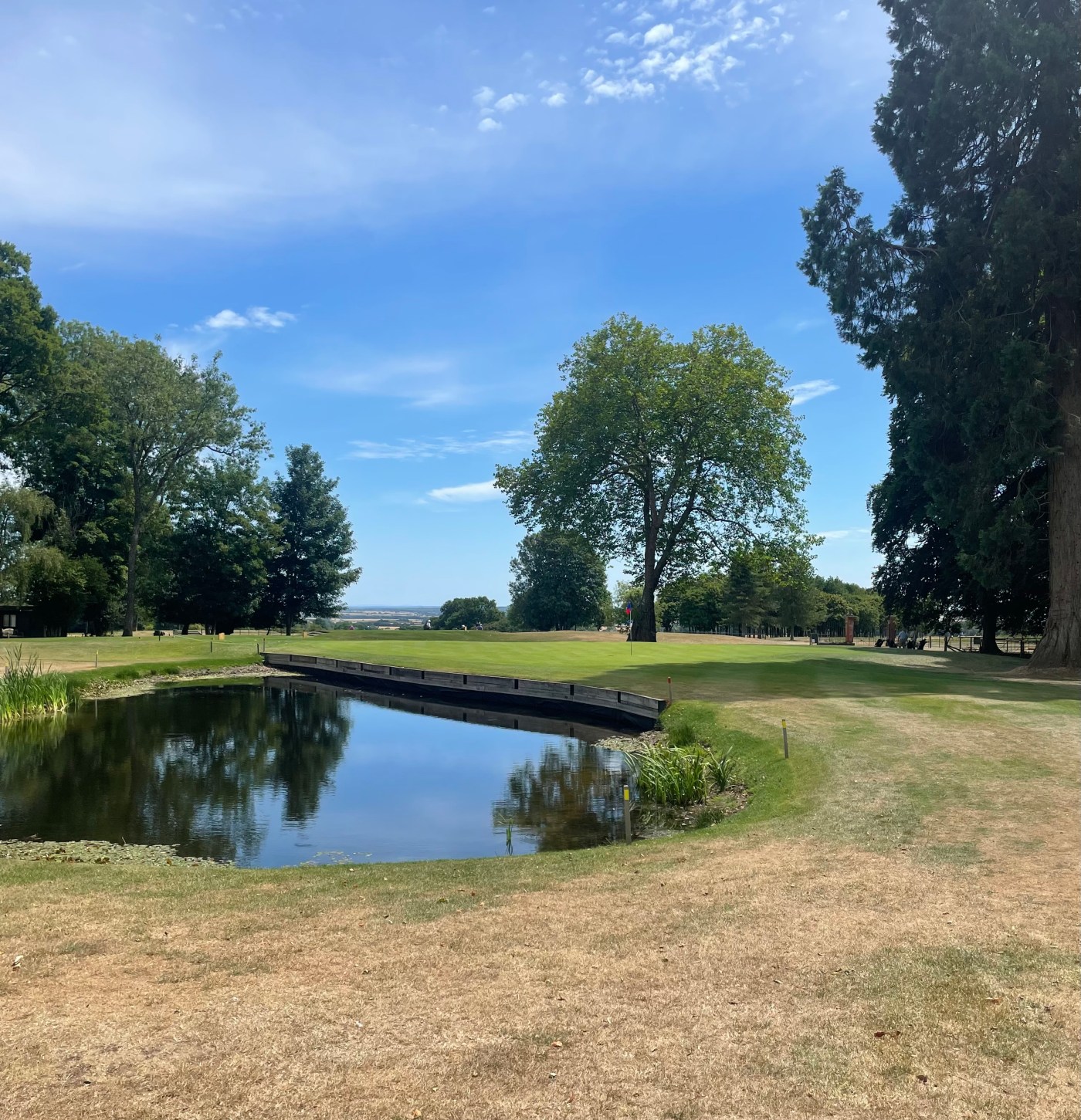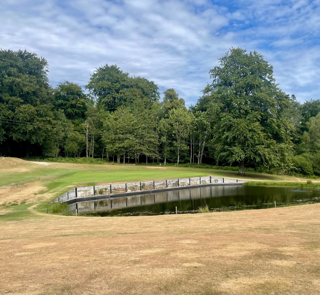 - In the Summer months the pond is comfortably within reach for most on the excellent 3rd hole. A tee shot that typically goes 170-180 yards, passing the trees in the centre of the fairway, leaves a better yardage to hold the green with a fuller approach shot.