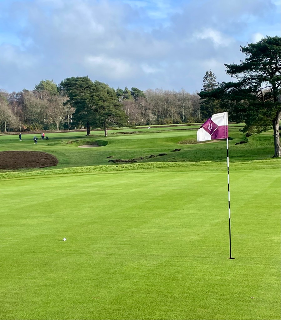 The section reaching the far corner of the course, next to a rather noisy M25, is arguably the finest. There is more variance and intrigue, and the ninth in particular is a stunning heathland hole, banked by heather and a copse of trees on the left, around which the fairway turns into a well-protected green.