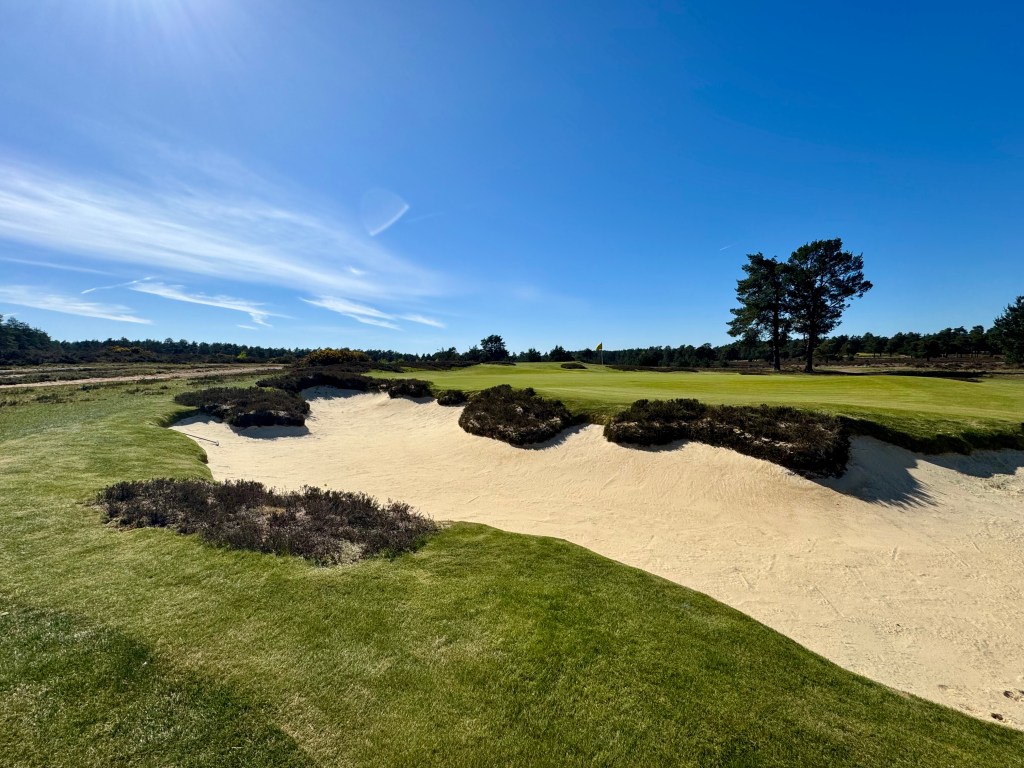 After a start with a fine long part four, followed by the second which is a taster of the excellent par threes to come, for me the third is a terrific heathland hole. Cascading around to the left and down to a green framed by heather with two excellent bunkers short left and right. A fair test for an accurate hitter, but loose shots will be punished.